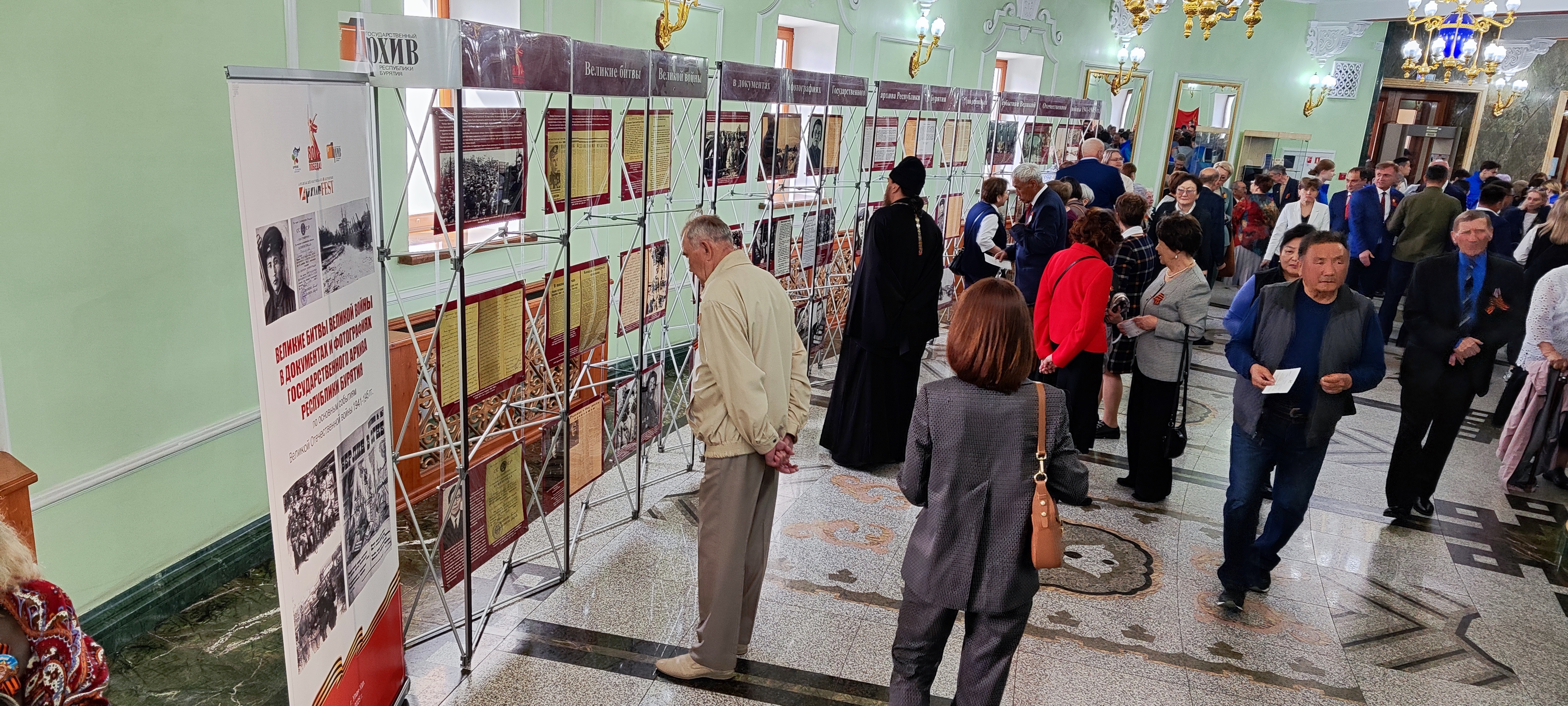 8 мая в Театре оперы и балета Государственный архив Республики Бурятия представил выставку архивных документов «Великие битвы Великой войны в документах и фотографиях Государственного архива Республики Бурятия», подготовленную в рамках Архивного фестиваля АрхивFEST/Бурятия – 2025. Выставка вызвала интерес у гостей и участников торжественного собрания общественности и праздничного концерта, посвященного 80-летию Победы в Великой Отечественной войне.